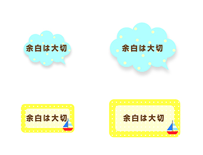 枠や吹出しの中は余白を意識して、文字がキツキツにならないようにしましょう。少しでも窮屈かも…?と思ったらスペースを確保して、文字周りの間隔を広げてあげるだけですっきりとしたデザインになります。