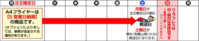 A4フライヤー印刷:納期(弊社から商品を出荷させていただく日)