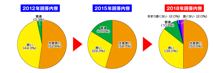 『大変良い』『良い』ともに2015年のアンケートでは下がっていたのですが、改善の効果もあったのか、どちらも上昇した嬉しい結果となりました。