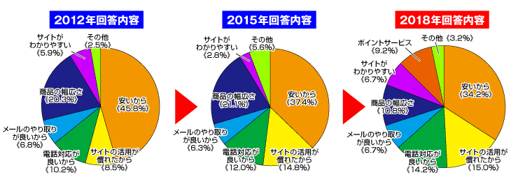 弊社最大の売りである『安さ』が以前から変わらず一番の理由として、半数近くの理由となっていますが、少しづつ割合も下がっていることからも、社内での生産性の向上、業務の効率化、経費削減を改めて、よりお客様に満足していただけるように尽力してまいります。