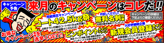 商品・サイズ・用紙・色数・部数が限定されたピンポイントキャンペーン!詳しくはこちらをご覧ください。