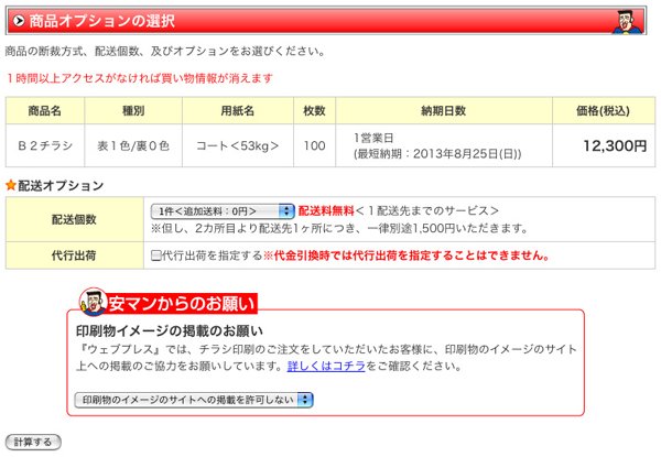 掲載の許可の確認は注文時のオプション選択画面で行ないますので宜しくお願い致します。