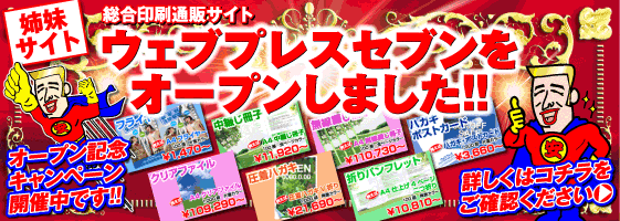 ウェブプレスセブンは総合印刷通販サイトとして幅広い商品を取り揃えております。是非ご利用くださいませ。