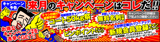 9月に開催する予定のキャンペーンを逸早くご案内しています。(2014年8月18日公開)