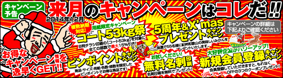 12月に開催する予定のキャンペーンを逸早くご案内しています。(2014年11月20日公開)