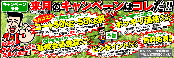 2015年5月に開催する予定のキャンペーンを逸早くご案内しています。(2015年4月17日公開)