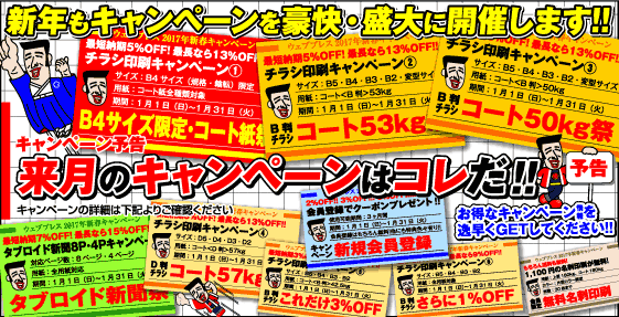 2017年1月に開催予定のキャンペーンをご案内しています。(2016年12月19日公開)