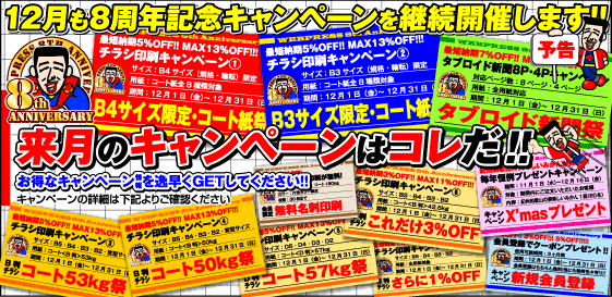 12月も8周年記念キャンペーンを継続開催します!!