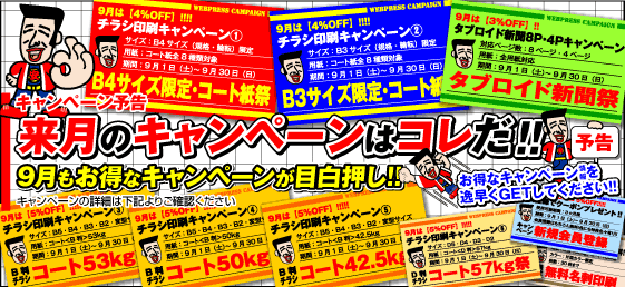 9月もチラシ・タブロイド新聞が大変お得です!!