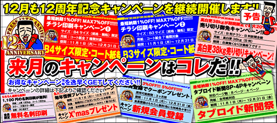 12月は12周年記念キャンペーンを継続開催予定です!!