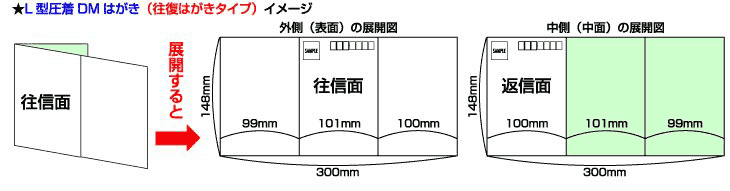 このページでは、L型圧着DMはがき(往復はがきタイプ)を紹介しています。