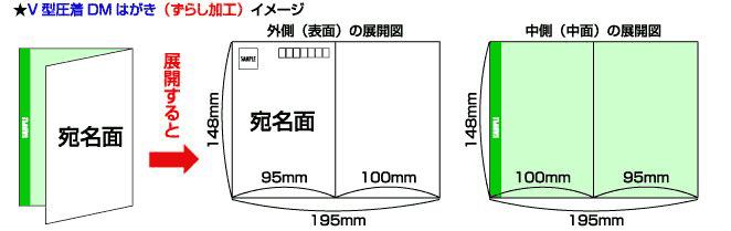 このページでは、V型圧着DMはがき(ずらし加工)を紹介しています。