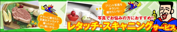 レタッチ・スキャニングに関するご注文の流れ、仕様・注意点、レタッチ例・参考価格につきましては下記をご覧ください。