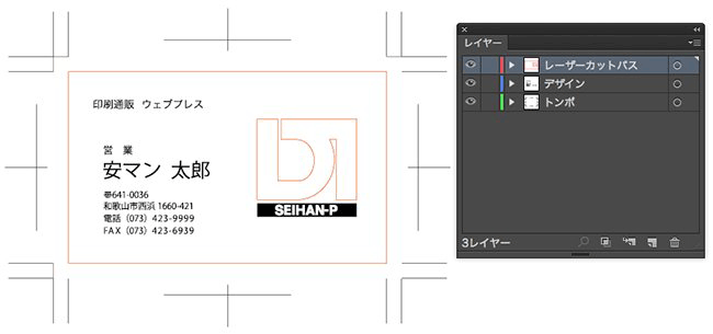 レーザー加工名刺のデータ作成時には、通常のデータ作成に比べて注意点が多くなります。必ずコチラの『レーザー加工名刺のデータ作成時の注意点』をご確認の上でデータの作成を行なってください。