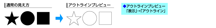 - カットパスの確認には、イラストレーターの【アウトラインプレビュー】を使用して、実際のパスの位置を確認していただく事をおすすめしています。